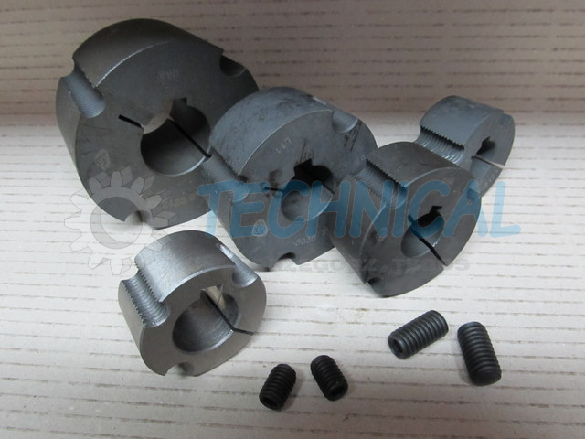 Mocowanie kół pasowych klinowych na tulei montażowej stożkowej Taper Lock z otworem metrycznym lub calowym dla szybkiego montażu i demontażu na wałach napędowych i napędzanych.