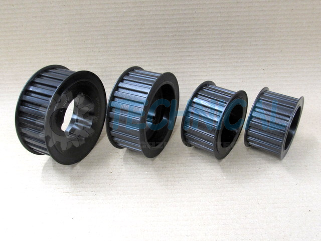 Koła pasowe zębate calowe składają się z wieńca, piasty oraz tarczy lub ramion łączących wieniec z piastą. Wieniec jest cylindrycznym, zewnętrznym pierścieniem, na którym spoczywa pas zębaty przekładni. Zarysy zębów na wieńcu kół zębatych odpowiadają zarysom współpracujących z nimi pasów zębatych. Przeniesienie momentu odbywa się za pomocą sił docisku między stykającymi się zębami pasa a zębami koła. Na obwodzie zębatych kół pasowych wykonuje się obrzeża boczne, utrzymujące pas na kole pasowym. Krawędź zewnętrzna obrzeża wystaje powyżej linii podziałowej pasa. Zabezpiecza to pas przed zsunięciem się z koła podczas pracy. W przypadku niewielkiej odległości między osiami, jedno z kół może nie posiadać obrzeży. Szerokość koła zębatego jest zazwyczaj większa od szerokości pasa. Standardowy asortyment kół zębatych firmy SIT obejmuje różnorodne koła pasowe zębate. Możemy również dostarczyć koła pasowe zębate wg projektu klienta.