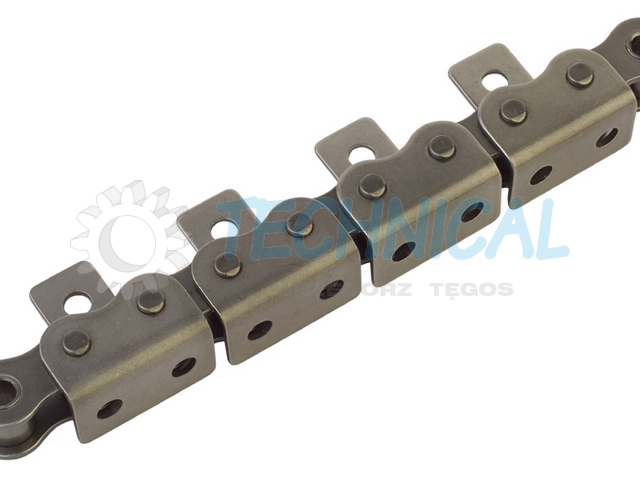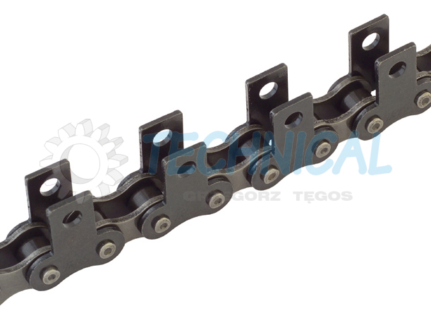 Łańcuchy rolkowe z zabierakami specjalistyczne oferujemy na indywidualne zamówienia. Łańcuch z zabierakami możemy dostarczyć wg indywidualnych potrzeb. Łańcuch z zabierakami najczęściej służy do transportu na przenośnikach a zabieraki spełniają rolę przytrzymujących transportowany produkt. W skład przekładni łańcuchowej - przenośnika łańcuchowego wchodzą minimum dwa koła łańcuchowe i łańcuch rolkowy z zabierakami lub bez. Łańcuchy z zabierakami Galla mogą być jednorzędowe lub wielorzędowe. Łańcuchy rolkowe z zabierakami możemy wyposażyć w różnego rodzaju zabieraki również nie standardowe.