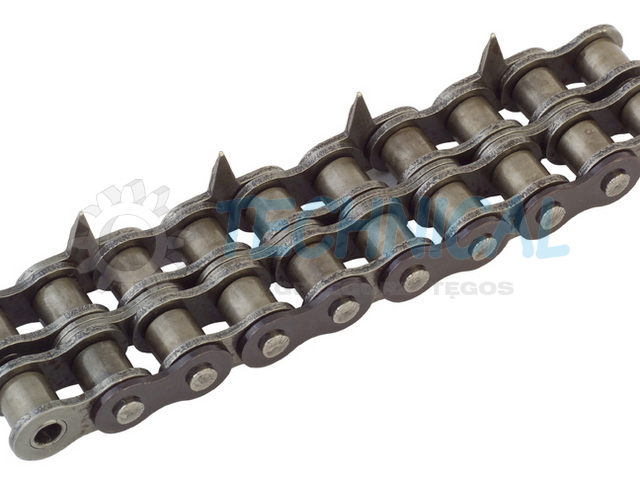 Łańcuchy rolkowe z zabierakami standardowe specjalistyczne i wg rysunku klienta. Łańcuchy specjalne i specjalistyczne transportujące mogą być wyposażone w rolki, sworznie, kolce, płytki itp. Łańcuch z zabierakami możemy dostarczyć na indywidualne zamówienie klienta. Łańcuchy przenośnikowe transportujące z wyposażeniem do przenośników transportujących.