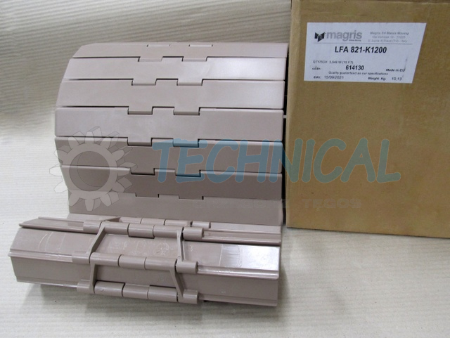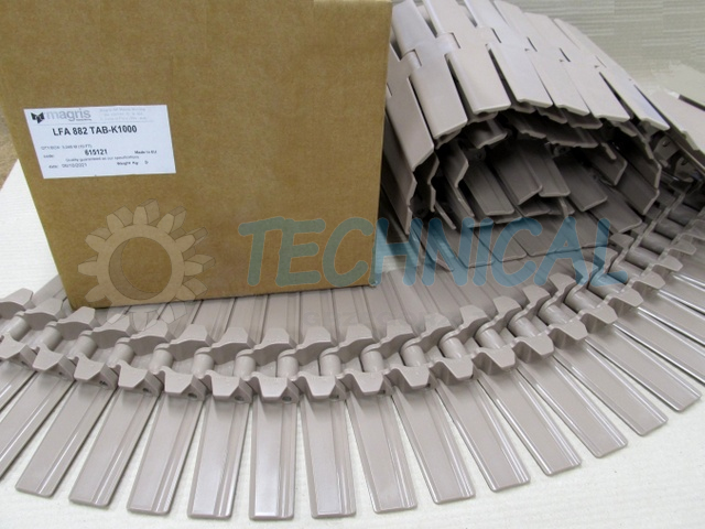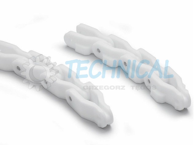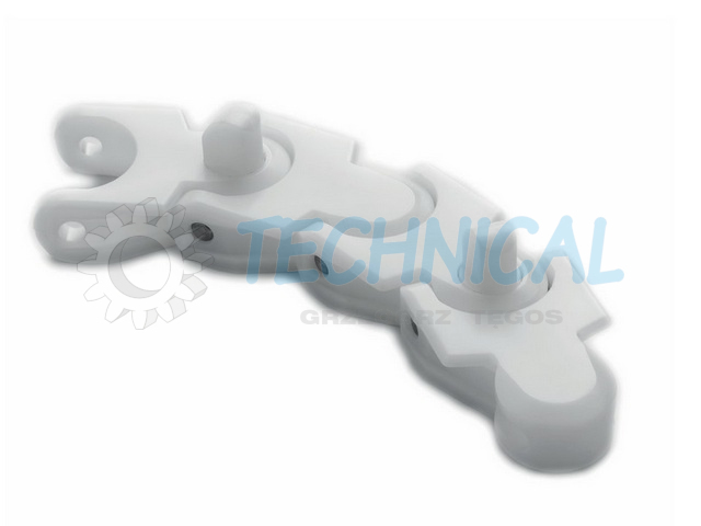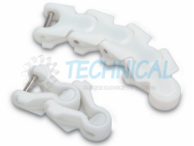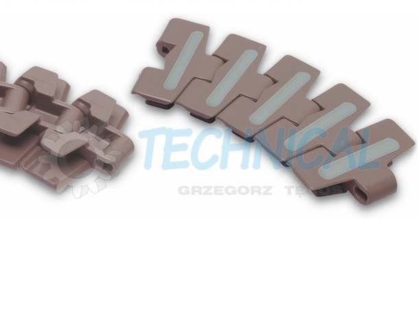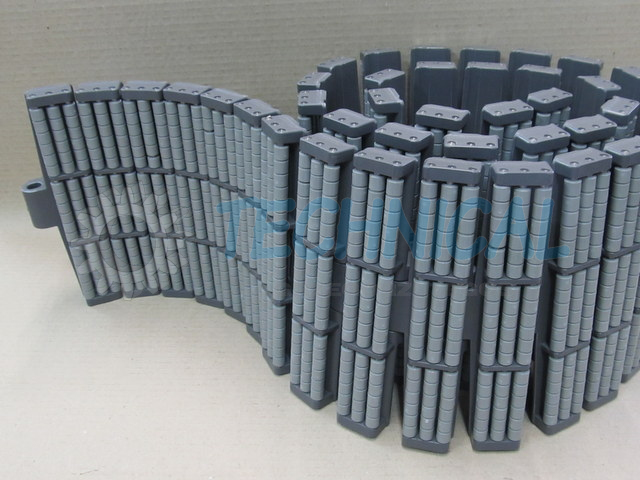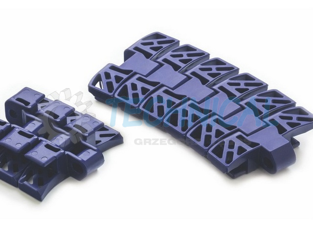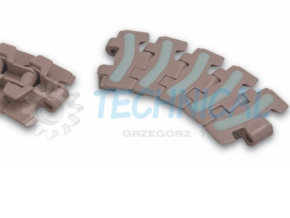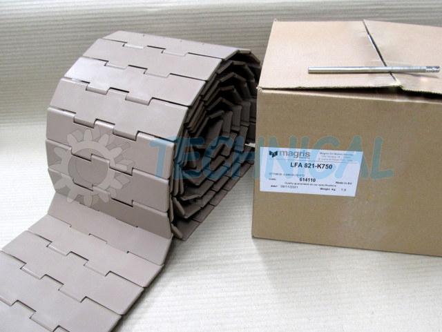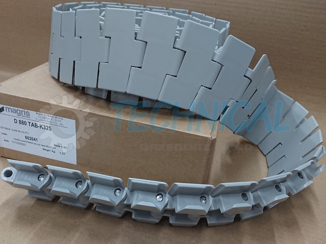 Dostarczane łańcuchy płytkowe transportujące z tworzywa sztucznego marki Magris, to europejska jakość. Łańcuch płytkowy z tworzywa do pracy prosto i skrętnie po łuku