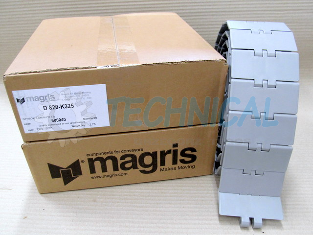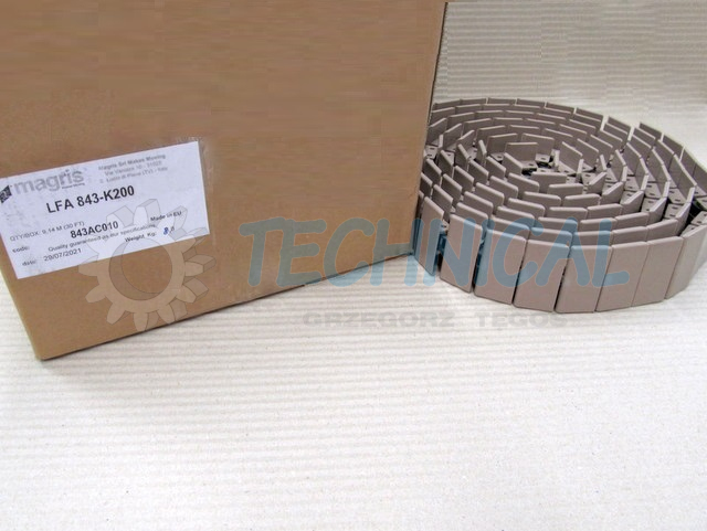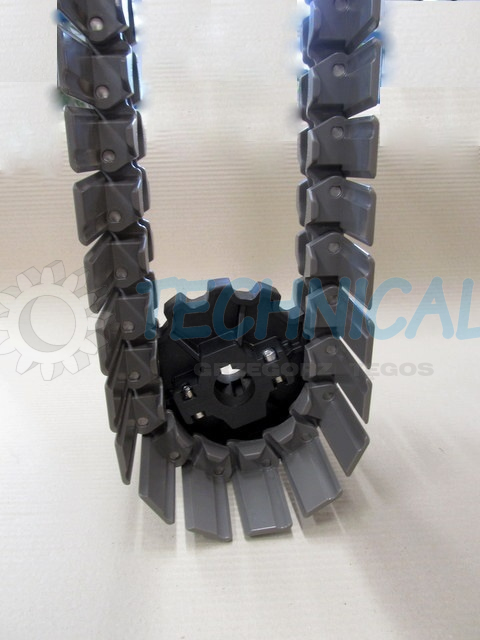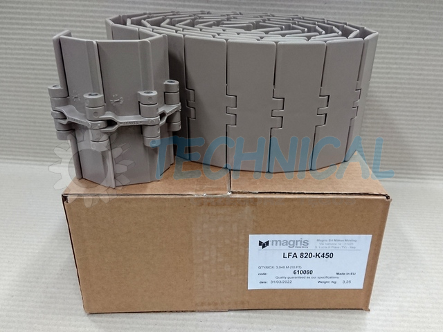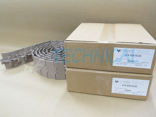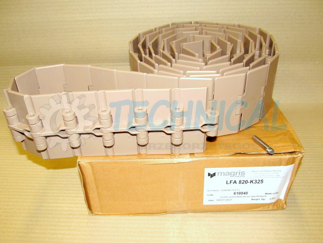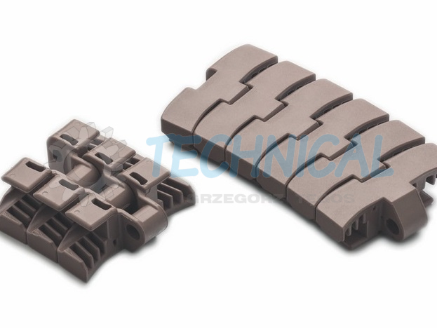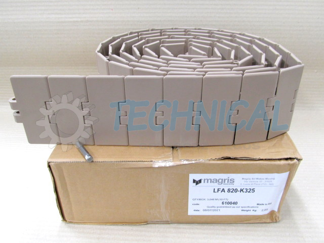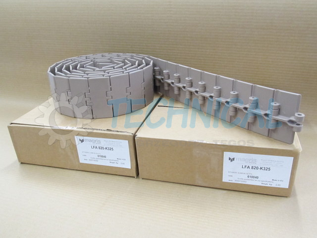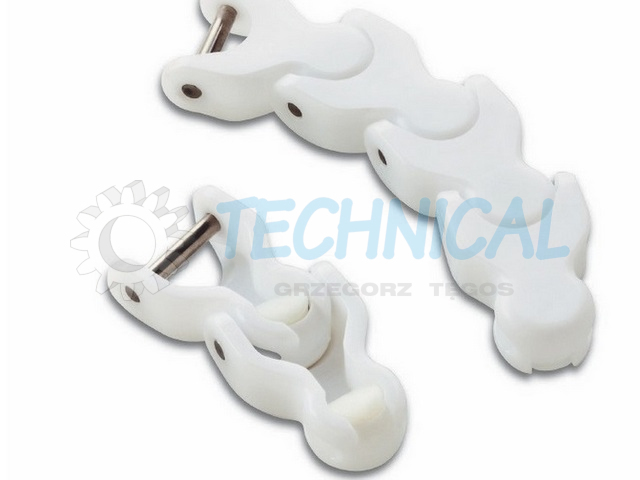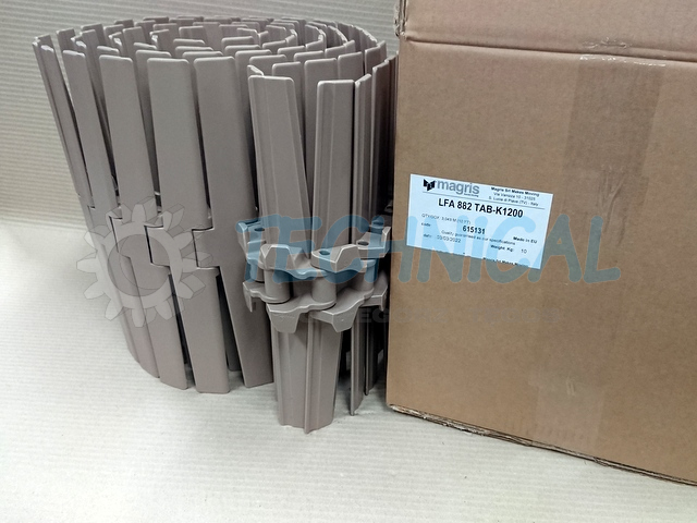 Dostarczane łańcuchy płytkowe transportujące z tworzywa sztucznego marki Magris, to europejska jakość. Łańcuch płytkowy z tworzywa do pracy prosto i skrętnie po łuku