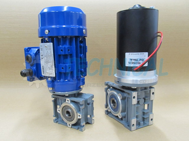Motoreduktor ślimakowy z silnikiem prądu stałego DC o napięciu 24v lub 12v posiada standardowy kołnierz silnika B5 lub B14