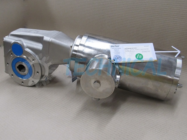 Napędy ślimakowe serii FV to standardowe napędy ślimakowe do branży spożywczej. Łatwe czyszczenie i higieniczna konstrukcja były bardzo ważne podczas procesu projektowania. Reduktory ślimakowe nierdzewne Dertec produkowane są z elektropolerowanej stali nierdzewnej 316. Odległość osi ślimaka do osi ślimacznicy zaczyna się od 30 mm i jest aż do 90 mm. Jet to konstrukcja łatwa do wymiany z większością popularnych napędów ślimakowych z aluminium. Szczególnie w przypadku napędów ślimakowych liczy się sprawność, która jest wynikiem przełożenia. Im wyższy stosunek, tym niższa końcowa sprawność. Z tego powodu chcielibyśmy doradzić rozważenie zastosowanie przekładni zębatych stożkowych Hypoidalnych z serii FK, które oferują wysoką wydajność wynoszącą około 92% przy redukcji do 300: 1.