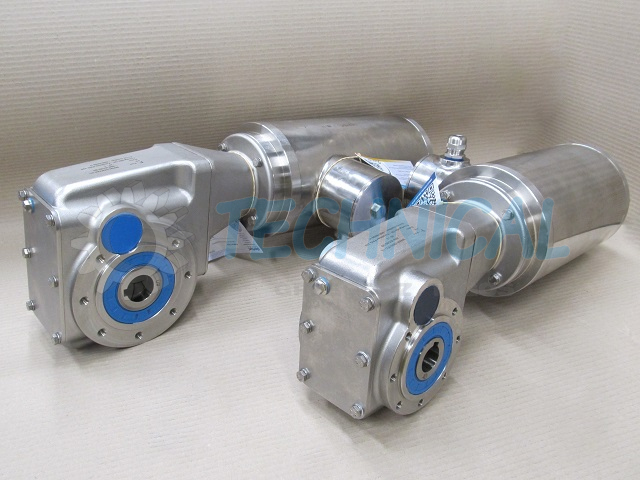 Przekładnia stożkowa hipoidalna FK nierdzewna z silnikiem - to motoreduktor nierdzewny kątowy hipolidalny