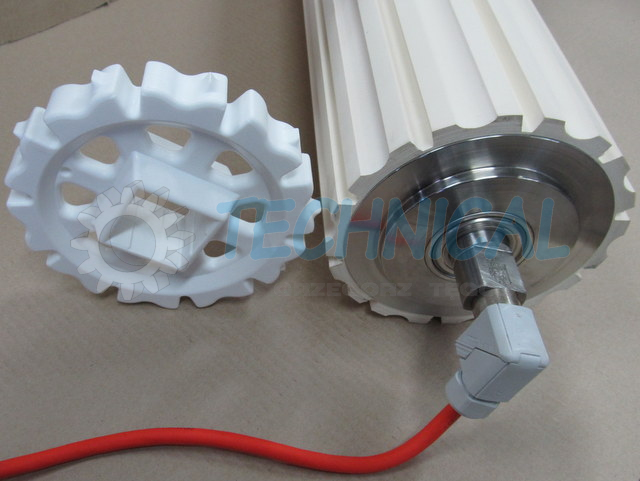 Elektrobęben - silnik bębnowy - napęd przenośnika taśmowego aby nadawał się do pracy beztaśmowej powinien mieć wszystkie zębatki przekładni stalowe. Praca elektrobębnów bez taśmy to pogorszone odprowadzanie ciepła z płaszcza elektrobębna. Wszystkie elektro bębny LAT Himmel posiadają wszystkie zębatki w przekładni stalowe i spełniają warunek i dopuszczenie do pracy beztaśmowej.