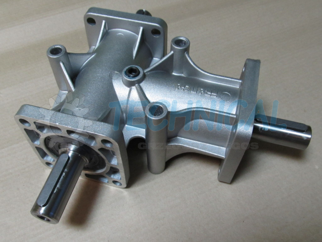Przekładnia kątowa 90 st zmienia kierunek transmisji obrotów i momentów obrotowych pod kątem prostym.