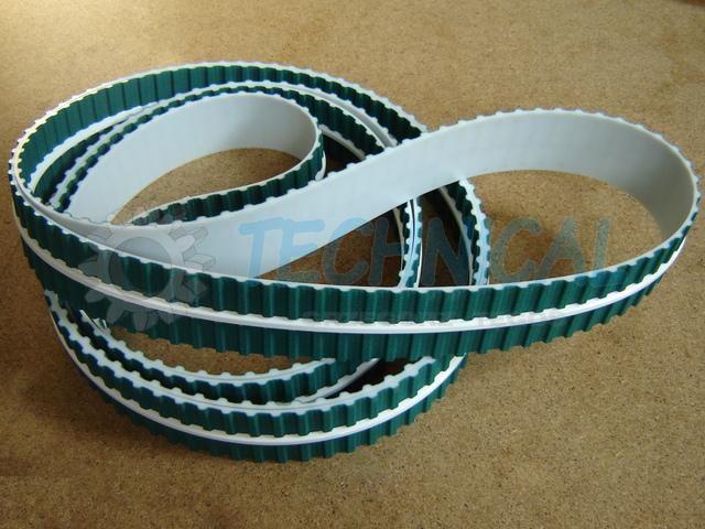 Łączenie pasów zębatych na wymiar wg zamówienie klienta dokonujemy poprzez specjalne naprzemienne wyprofilowania wzdłużne pasa. Naprzemienne ściśle dopasowane wycięte zęby muszą być precyzyjnie przygotowane z uwzględnieniem podziałki i profilu paska zębatego na metry który ma być połączony. Łączenie pasów zębatych wykonujemy na indywidualne zapotrzebowanie i uzgodnienie z klientem.
