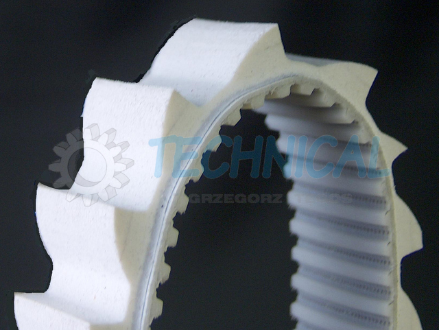 Pas zębaty z pokryciem i frezowany na indywidualne zapotrzebowanie klienta pod specjalne aplikacje.