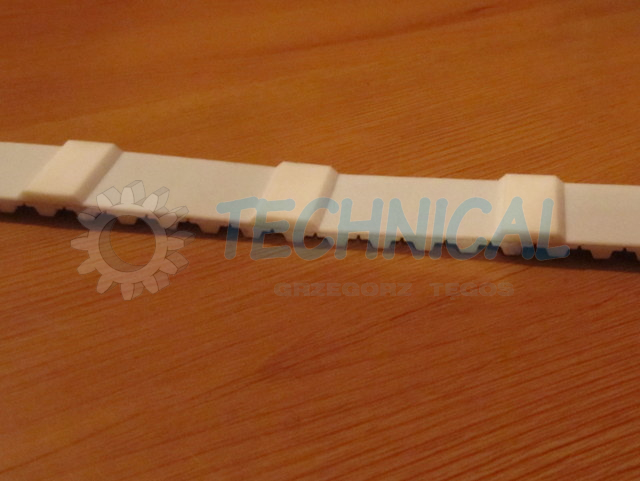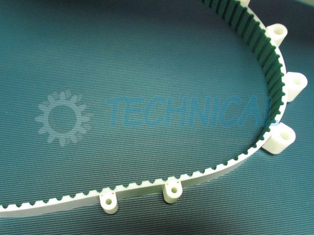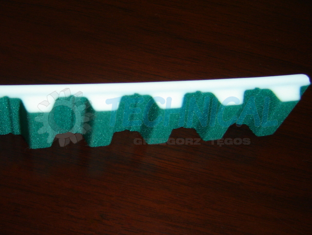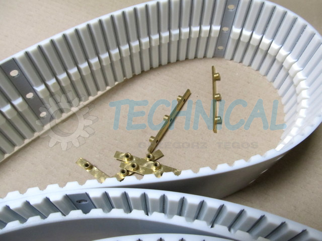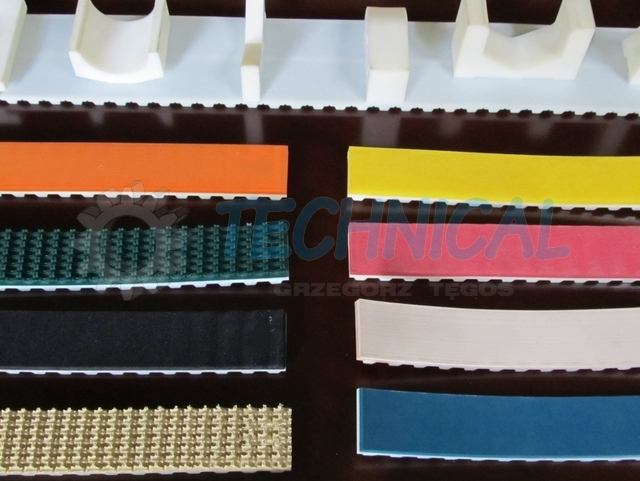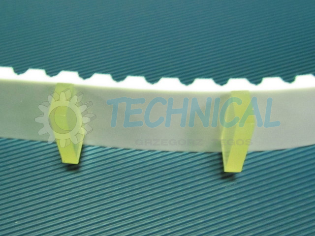 - Zabieraki Istnieje również możliwość przytwierdzenia do pasów zębatych poliuretanowych zabieraków, dla aplikacji przenoszących, obsługujących i pozycjonujących. Zabieraki są produkowane z tego samego materiału co pasy, co gwarantuje ich maksymalną wytrzymałość. Pasy z zabierakami umożliwiają transport produktów przy niskim poziomie hałasu, nawet przy dużych prędkościach pasa zębatego. Dostępny jest bardzo szeroki zakres kształtów i rodzajów zabieraków. Polecane jest wybierać profil zabieraka odpowiedni do danego profilu pasa. Zabierak może być przygrzany na wierzchu pasa nad zębem lub między zębami taśmy (które znajdują się pod spodem pasa). Pas zębaty zachowuje maksymalną elastyczność w przypadku przygrzania zabieraka nad zębem.Warto wspomnieć, że kontakt pasa zębatego po kole może być ograniczony przez zamocowane zabieraki. Z tego powodu zaleca się wybór zabieraków z minimalną dopuszczalną grubością „U”(wysokością)Na specjalne zapytanie jest możliwe wyprodukowanie pasa ze specjalną obróbką zębów jak i pokrycia.