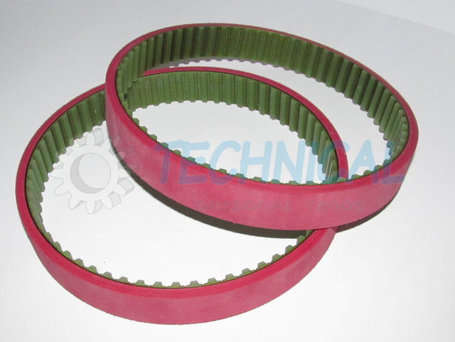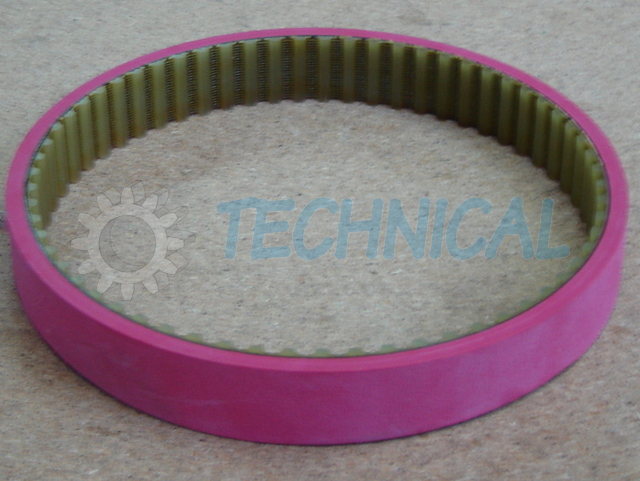 - Pokrycie gumowe dostępnych jest wiele rodzajów pokryć górnych gumowych z kauczuku syntetycznego i naturalnego. Ze względu na wysoki współczynnik tarcia gumy i odporność na wysoką temperaturę, pasy zębate poliuretanowe z pokryciem górnym (nakładka) gumowym są wykorzystywane w wielu różnych aplikacjach m. in. w przemyśle papierniczym, ceramicznym, szklarskim, w przetwórstwie drewna, w maszynach pakujących.