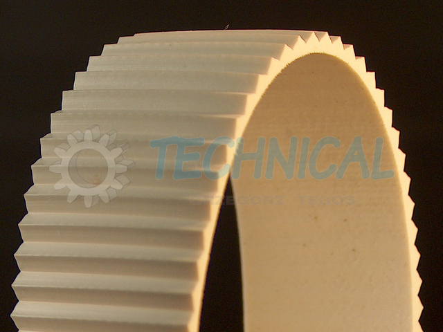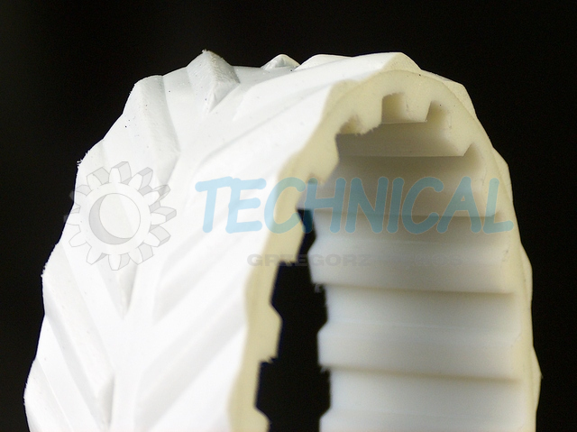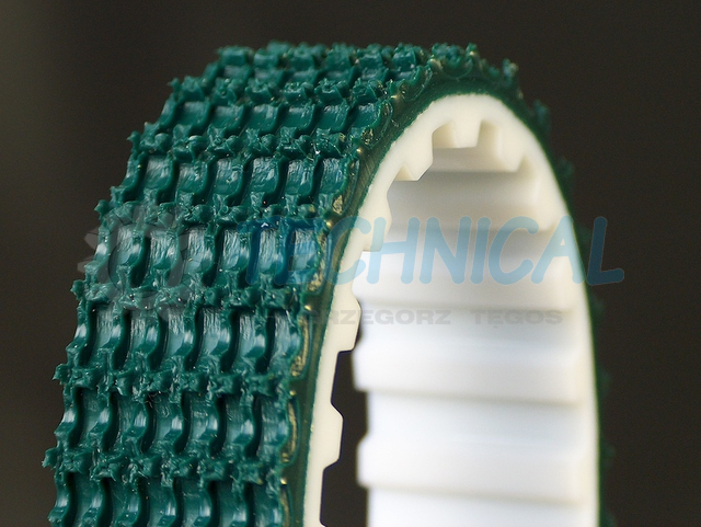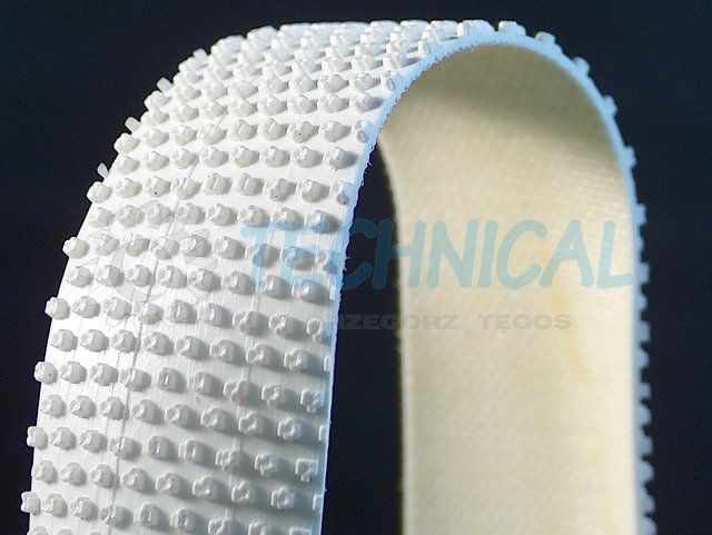 Pasy zębate pokryte folią PCV służą do transportu. Transport produktu na pasach zębatych pokrytych PVC jest bardziej bezpieczny z uwagi na współczynnik tarcia.
