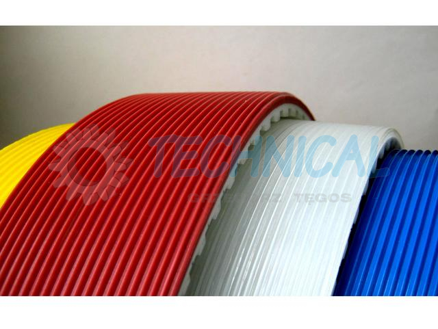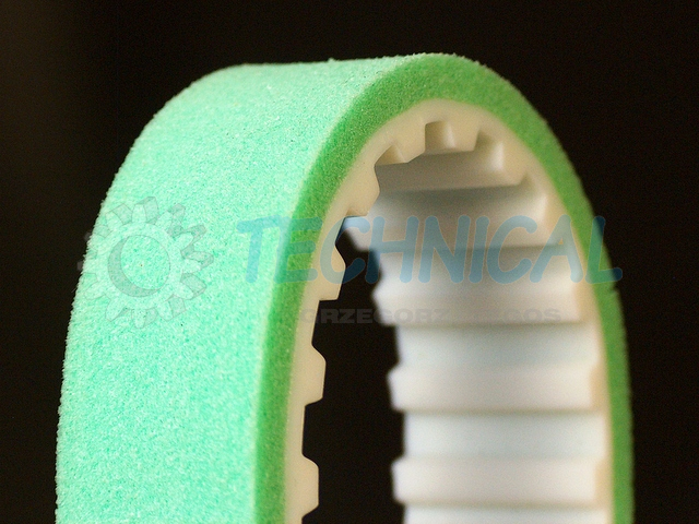 Pas zębaty z sylomerem - spienionym pu może być o różnych twardościach spienienie i z różnymi kolorami pokrycia.