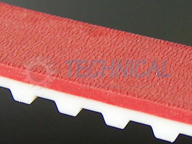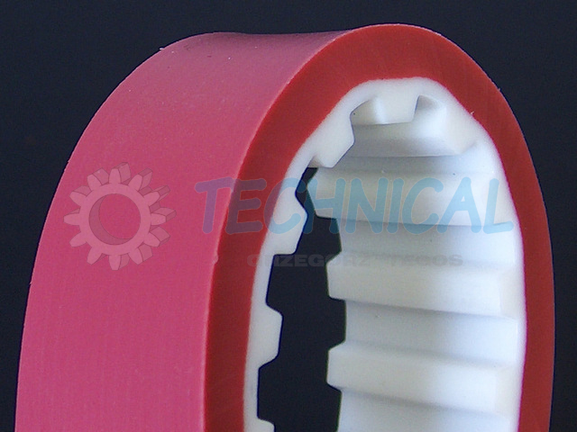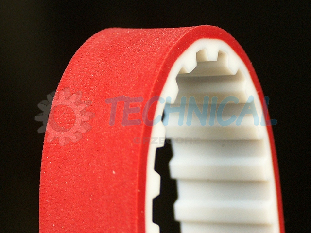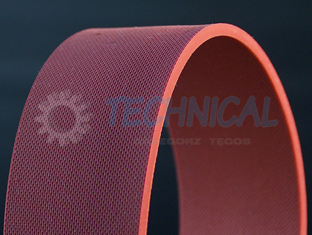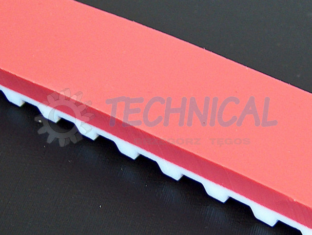 Paski zębate pokryte gumą to zwiększony współczynnik tarcia. Pasy pokryte czerwoną gumą do aplikacji ciągnięcia folii.