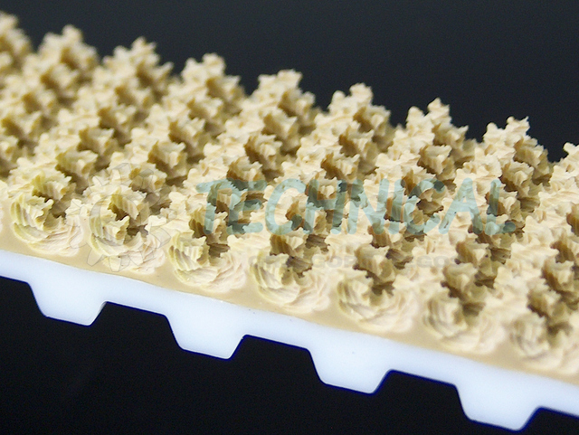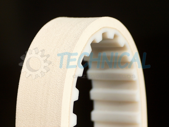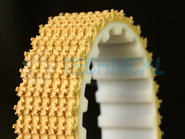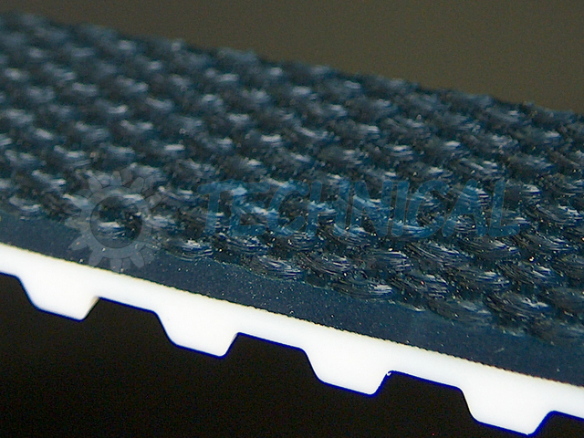 W pokryciu pasa zębatego można zastosować gumy o różnych stopniach twardości. Dzięki temu otrzymujemy powierzchnię nośna pasa zębatego z gumą o odpowiednie twardości do aplikacji.