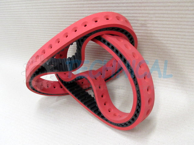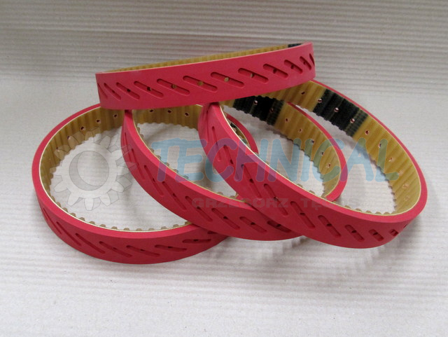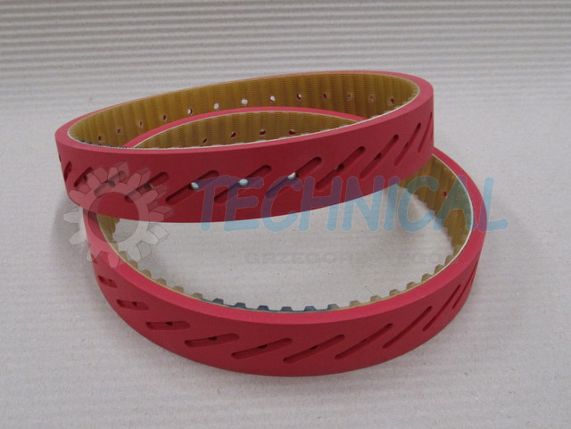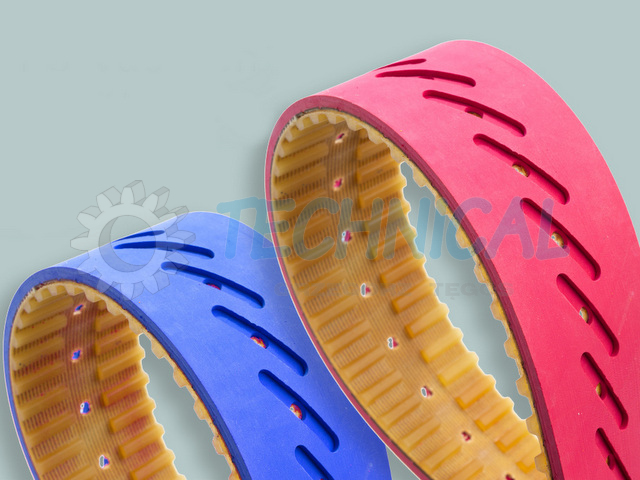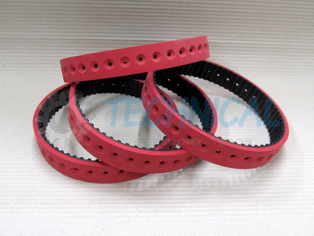 Występują różne pokrycia gumowe pasów zębatych do ciągnięcia folii. W zależności od aplikacji odpowiednio stosuje się pasy zębate z gumowym pokryciem o dużym współczynniku tarcia.