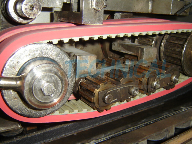Paski zębate z gumowym pokryciem służą do odciągu foli i kształtowania w rękaw w maszynach pakujących.