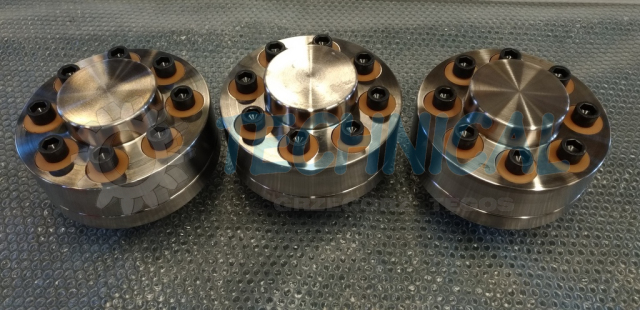 Wymiana elementów elastycznych czy kompletnych palców jest bardzo łatwa. Jest to możliwe dzięki przemyślanej konstrukcji sprzęgła palcowego DYHK. Chcąc wymienić same elementy elastyczne czy kompletne palce nie potrzeba w większości aplikacji rozstawiać elementów połączonych i ponownie osiować wałów. Można przeanalizować kroki wymiany palców poniżej na foto.