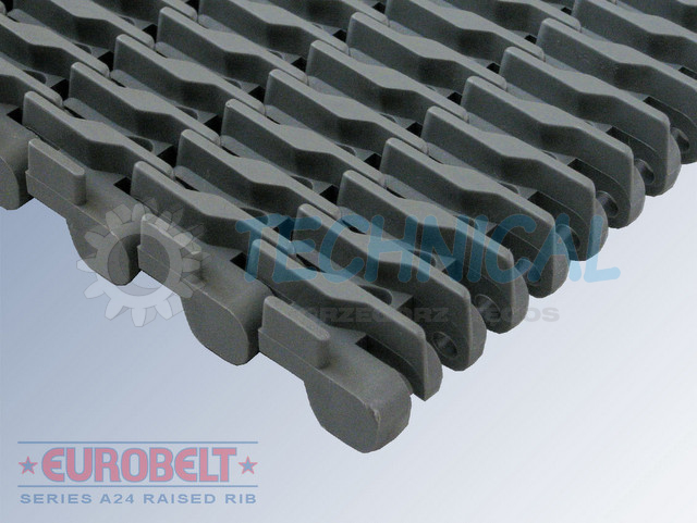 Taśma modularna głównie przeznaczona jest do transportu produktów gdzie higiena taśmy transportującej modularnej jest szczególnie ważna. Ta seria Eurobelt A24 taśm modularnych posiada budowę umożliwiającą łatwe wymycie taśmy w jej łączeniach. Taśmy modularne A24 przeznaczone są do przemysłu spożywczego.