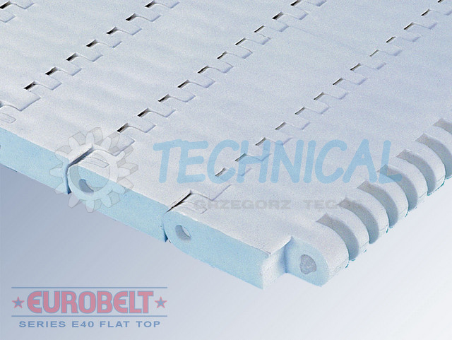 Dzięki zamkniętej powierzchni, taśma transportowa modularna serii E40 Flat Top jest dobrym rozwiązaniem dla wszystkich aplikacji, gdzie nie jest wymagane odprowadzenie wody przez taśmę. Ta taśma transportowa modułowa jest szczególnie odporna na uszkodzenia mechaniczne. Dzięki czemu jest odpowiednia do przenoszenia na dużą odległość bardzo ciężkich ładunków.