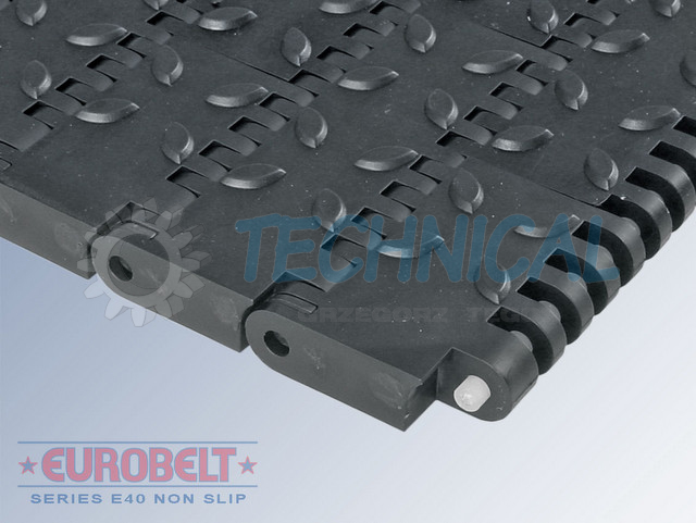 Seria taśm transportowych modułowych E40 jest najbardziej odporna za wszystkich taśm modularnych Eurobelt a to dzięki specyficznej budowie i wysokiej wytrzymałości konstrukcji. Siła ciągu w taśmie transportowej modułowej E40 E41 jest przyłożona w centralnej części modułów. Dzięki takiemu rozwiązaniu konstrukcyjnemu jest możliwa praca przy dużych obciążeniach w ekstremalnych warunkach.
