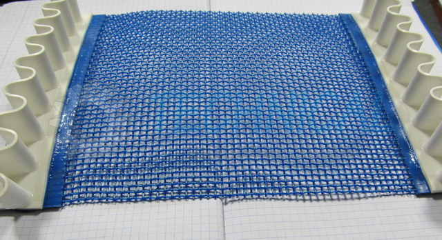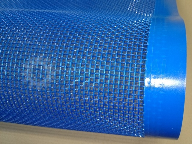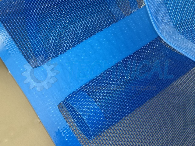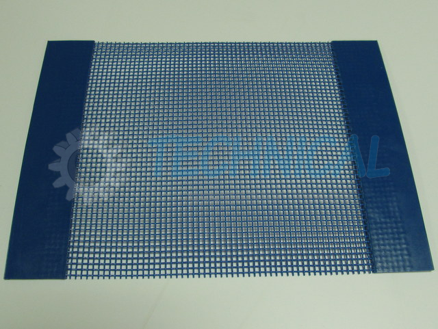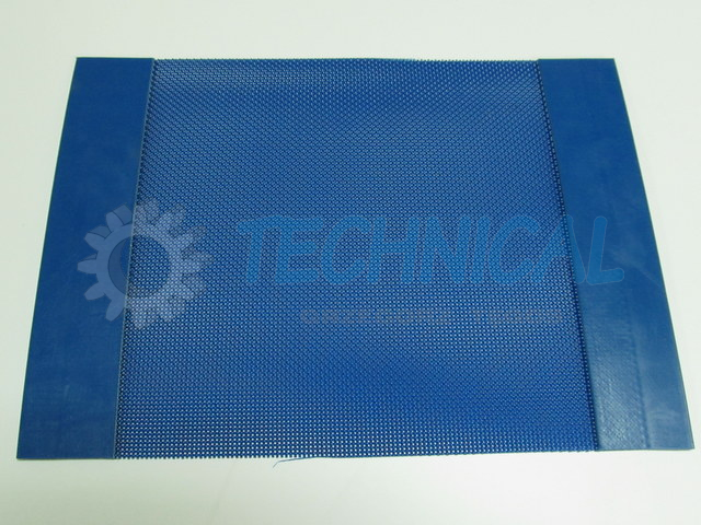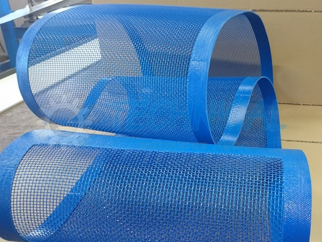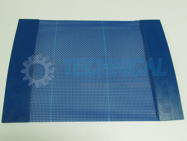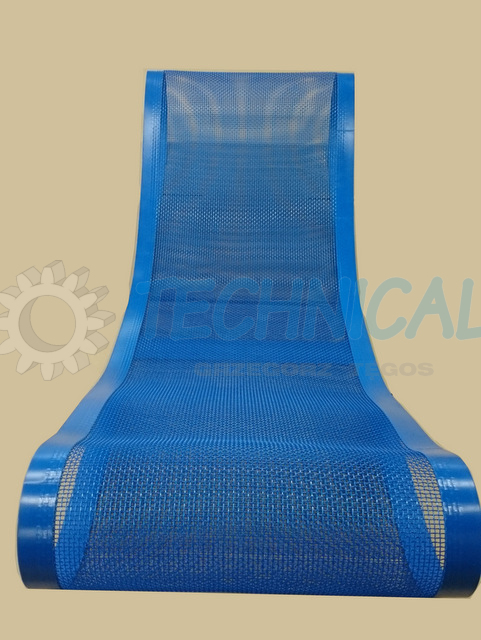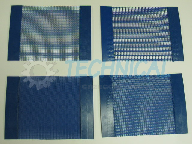 Wzmocnienia pas siatkowy poliestrowa osnowa boczna z pcv-pokrycie osnowy dolne strukturyzowane-wzmocnienia boczne: PCV od 30 do 70mm szerokości.-wzmocnienie końcowe: PCV 40 albo 60 mm szerokości i w zależności od połączenia.-taśmy przenośnikowe taśmowe siatkowe połączone mogą być spinkami ze stali nierdzewnej lub plastikowym łączem, albo prostym połączeniem palcowym - zgrzewanym.