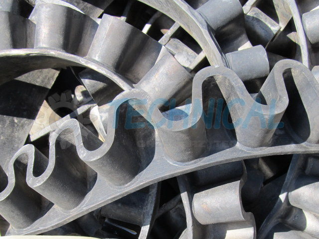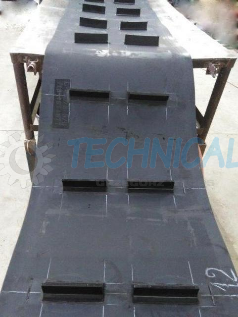 Posiadamy całą gamę taśm przenośnikowych tkaninowo-gumowych. Taśmy gumowe przenośnikowe służą do różnych zadań, a z uwagi na swoją konstrukcję mogą pracować płasko poprzecznie lub w tak zwanej niecce. Niecka to klasyczny układ trójkrążnikowy. Praca taśmy przenośnikowej gumowej po krążnikach - po rolkach jest odpowiednia przy odpowiednim pokryciu gumą tkaniny nośnej spodniej.