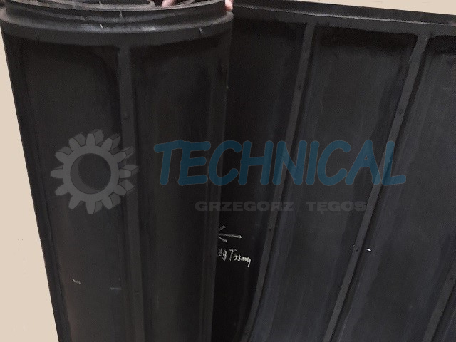 • szerokość taśm gumowych od 400mm do 2100mm z obrzeżami zalanymi (ochrona rdzenia taśmy przed m.in. warunkami atmosferycznymi) – można dokonać zwężenia taśmy, wtedy będzie posiadać obrzeża cięte,