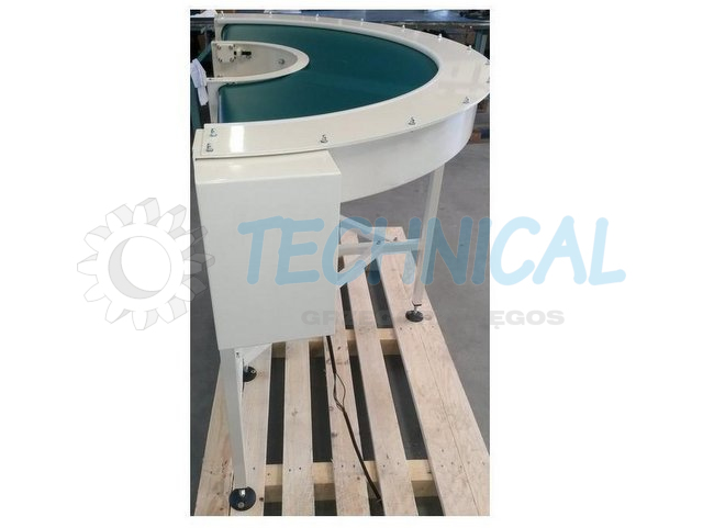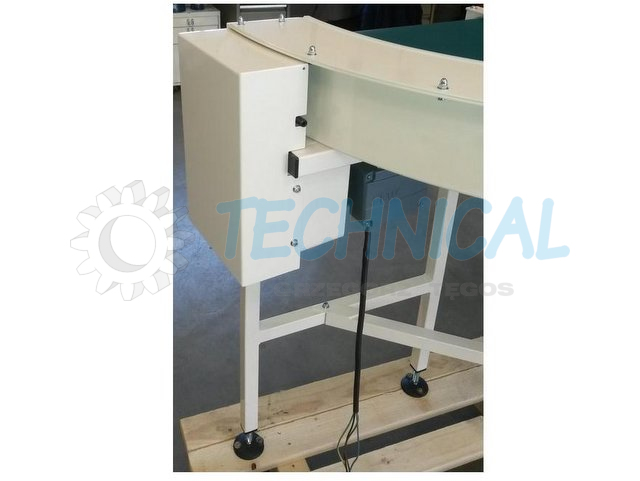 Opcje transportera łukowego SRI - dopasowywanie na specjalnych szynach typu N, dla dużych prędkości.-automatyczne urządzenie smarujące łańcuch, -dostępne taśmy: PCV, filc, poliester, odporne na ogień -samogasnące-obrzeża boczne ze stali zwykłej, stali nierdzewnej lub tworzywa-nogi zakończone kółkami z hamulcem-podwójny kierunek obrotów po przemontowaniu motoreduktora-regulowana prędkość falownikiem-wszystkie kolory RAL farby epoksydowej
