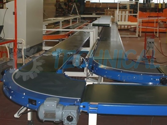 Przenośniki taśmowe łukowe znajdują zastosowanie wszędzie tam, gdzie wymagana jest zmiana kierunku transportu produktów na taśmie transportującej. Przykłady obszarów, w których mogą pracować podano powyżej.
