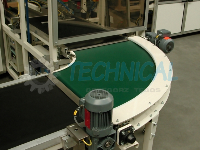 Przenośniki łukowe służą do zmiany kierunku transportowanego produktu. Na transporterach łukowych można zmienić kąt transportu produktu o 30 do 180st. Standardowe - najczęściej spotykane przenośniki łutowe to 90st.